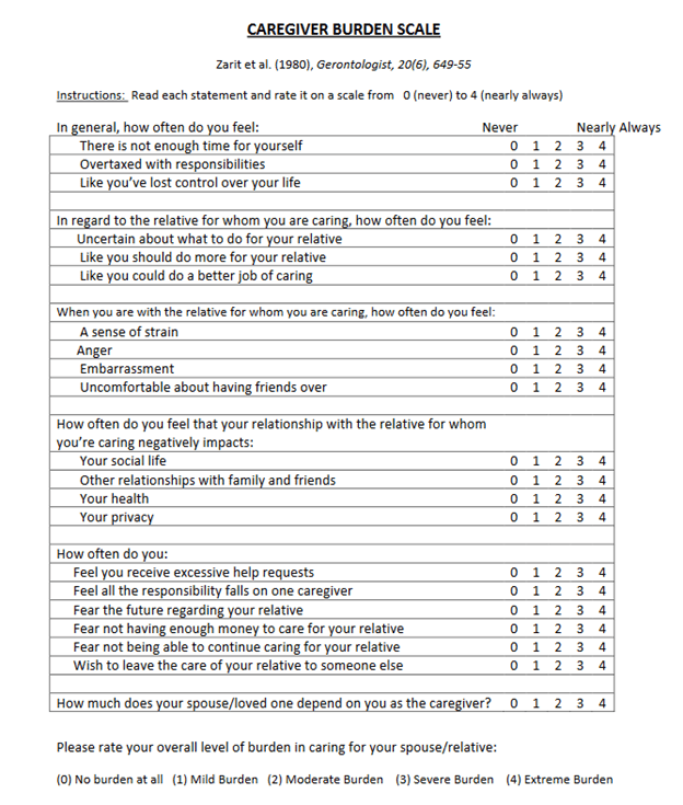 This audience does not have to be told that caring for a loved one with PSP can be a major burden. Two CurePSP Centers of Care have now quantified this using the Zarit Caregiver Burden Scale completed from 2014 to 2022 by 139 caregivers of 131 persons with atypical Parkinsonian disorders. The results are published in Clinical Parkinsonism & Related Disorders. Here’s the scale: