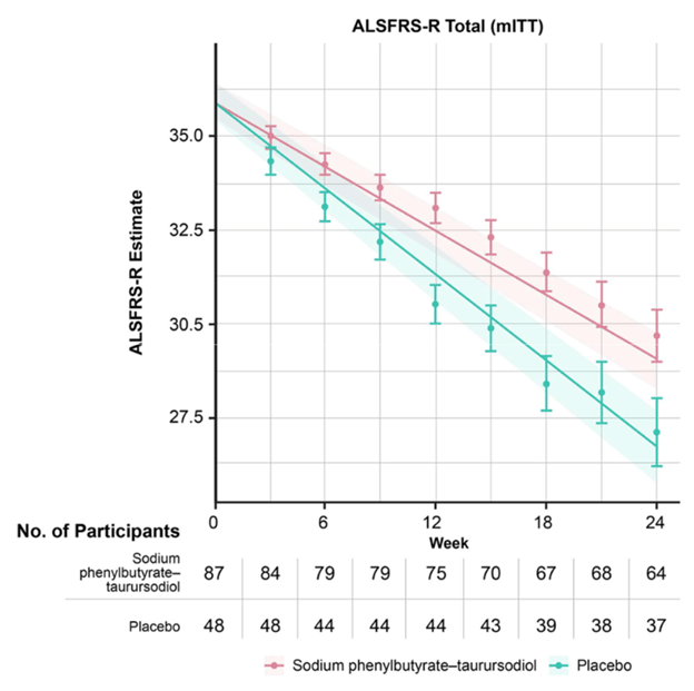 The treatment in question is actually two drugs, taurursodiol and sodium phenylbutyrate, both administered orally as a powder stirred into water. The first addresses the dysfunction of the mitochondria in PSP. The second reduces stress in the endoplasmic reticulum and enhances the unfolded protein response, both of which are also dysfunctional in PSP. All of these cellular functions are related and lab experiments show that the two drugs combined work better than the sum of their individual effects.