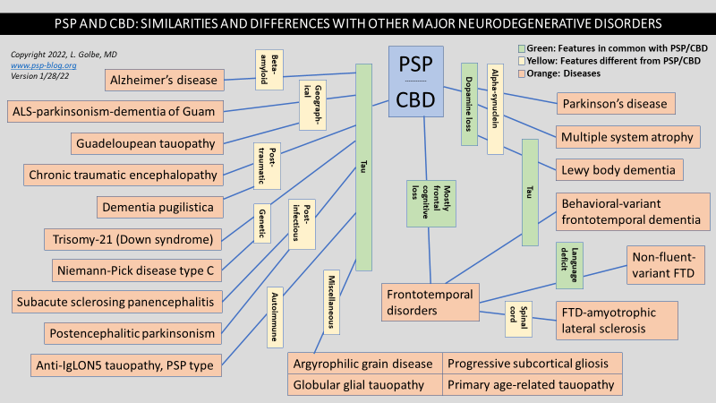 Over my career as a movement disorders subspecialist, I’ve heard both from professional colleagues and my patients that the term “atypical Parkinsonism” for PSP, CBD, MSA and a few other conditions is unwelcome. First, it implies that those conditions are simply unusual variants of Parkinson’s disease. However, they are actually independent diseases at the microscopical, molecular, and clinical levels with some features in common with PD. A similar problem applies to the term “Parkinson-plus.” PSP, CBD, and MSA aren’t simply PD with some additional features.