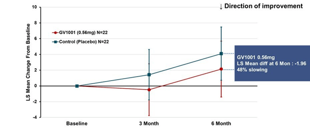 Now, the issue is just how safe and tolerable the drug was. The press release only says, “The safety profile of GV1001 in the Phase 2a PSP Clinical Trial was consistent with prior safety data. GV1001 was generally well-tolerated with no serious adverse events related to the drug reported.” I’ve seen the actual numbers, and the press release is right. All of the adverse events, and there were very few, were things common in this age group or complications of PSP itself.